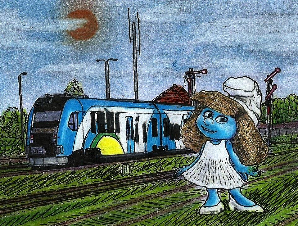 Kolejowe obrazki przysłał nam pan Sławomir z Wałcza. Ostatnio narysował... uwaga TGV na wałeckim dworcu PKP.