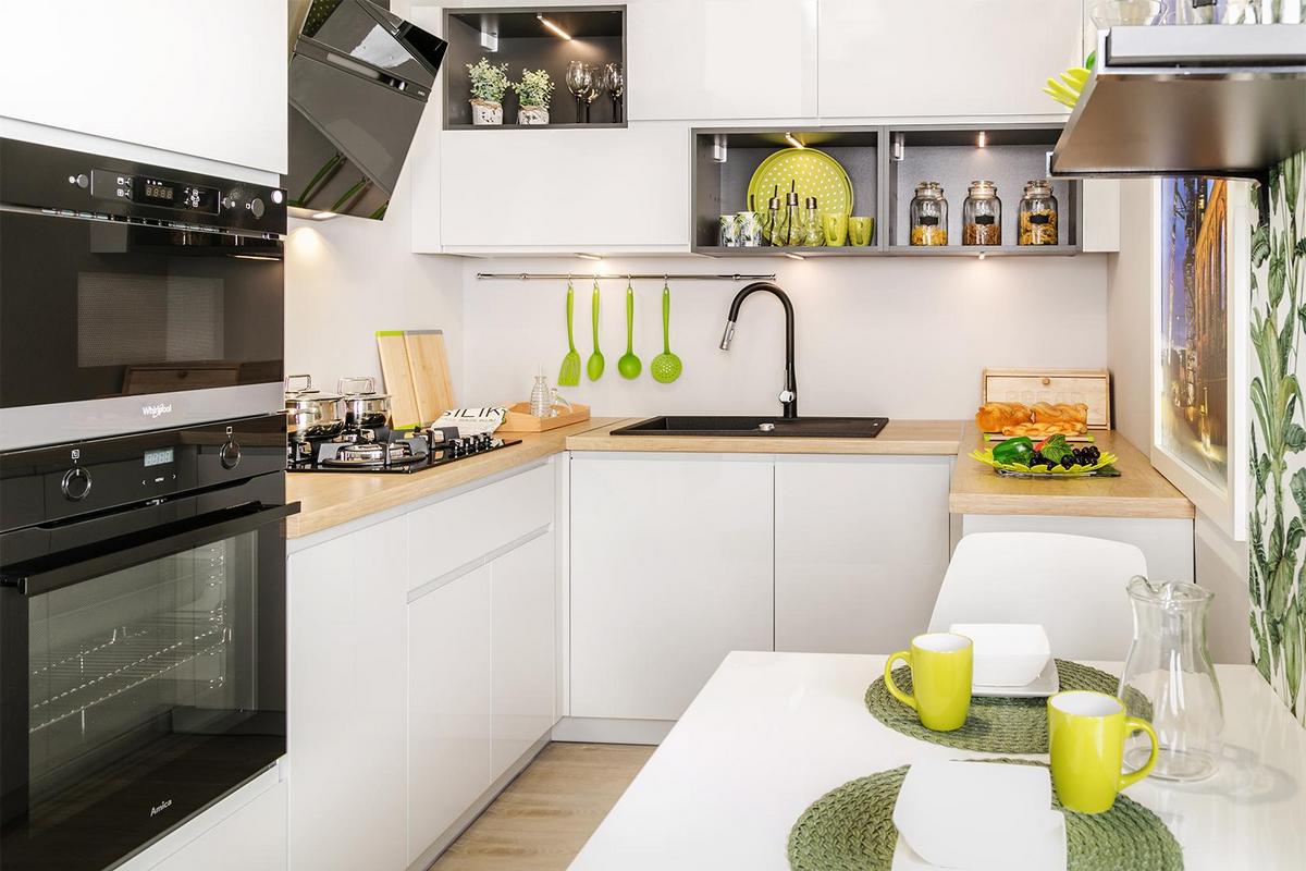 Wygląd szafek kuchennych, obok ścian i podłóg, ma największy wpływ na estetykę aranżacji kuchennej. Na pierwszy plan wysuwają się fronty kuchenne – przednie elementy zabudowy. Ich wykończenie potrafi zadecydować o stylistyce wystroju oraz wpłynąć na wizualny odbiór całej przestrzeni. Przykładowo błyszczące, białe fronty kuchenne w zabudowie o układzie horyzontalnym to sprawdzony sposób na optyczne poprawienie gabarytów wąskiej, nieustawnej kuchni.